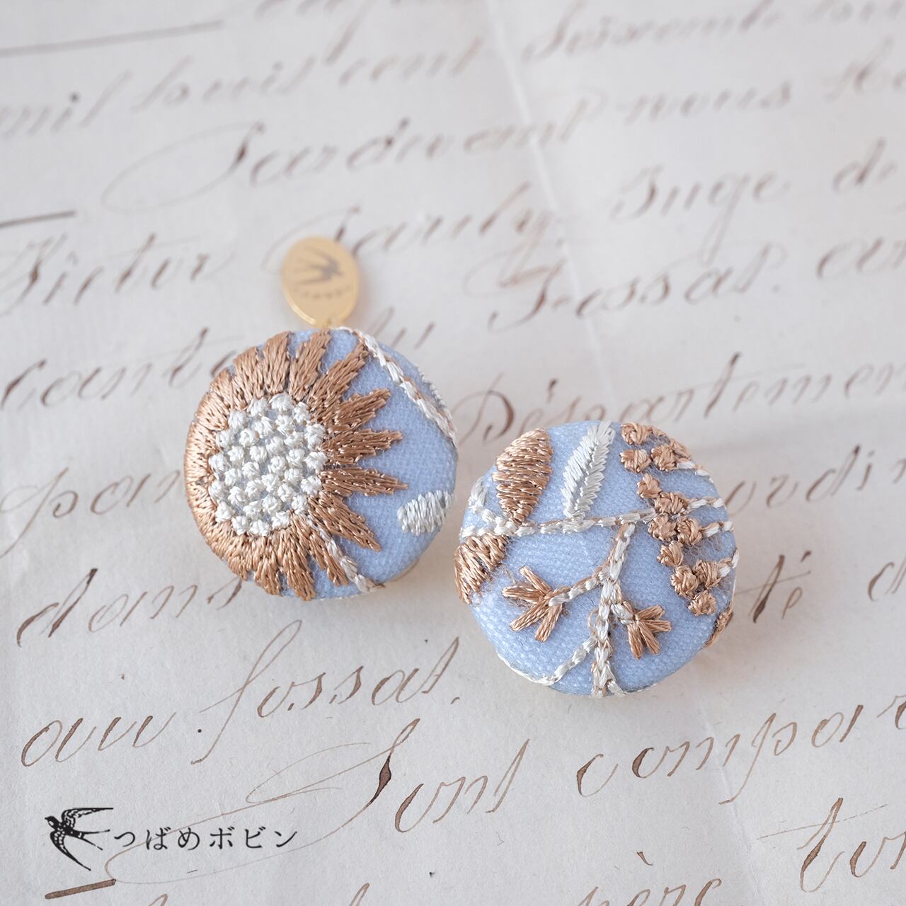 サリーボーダーのクリップ◎ペールブルーベージュ/花B【つばめボビンのクリップシリーズ】