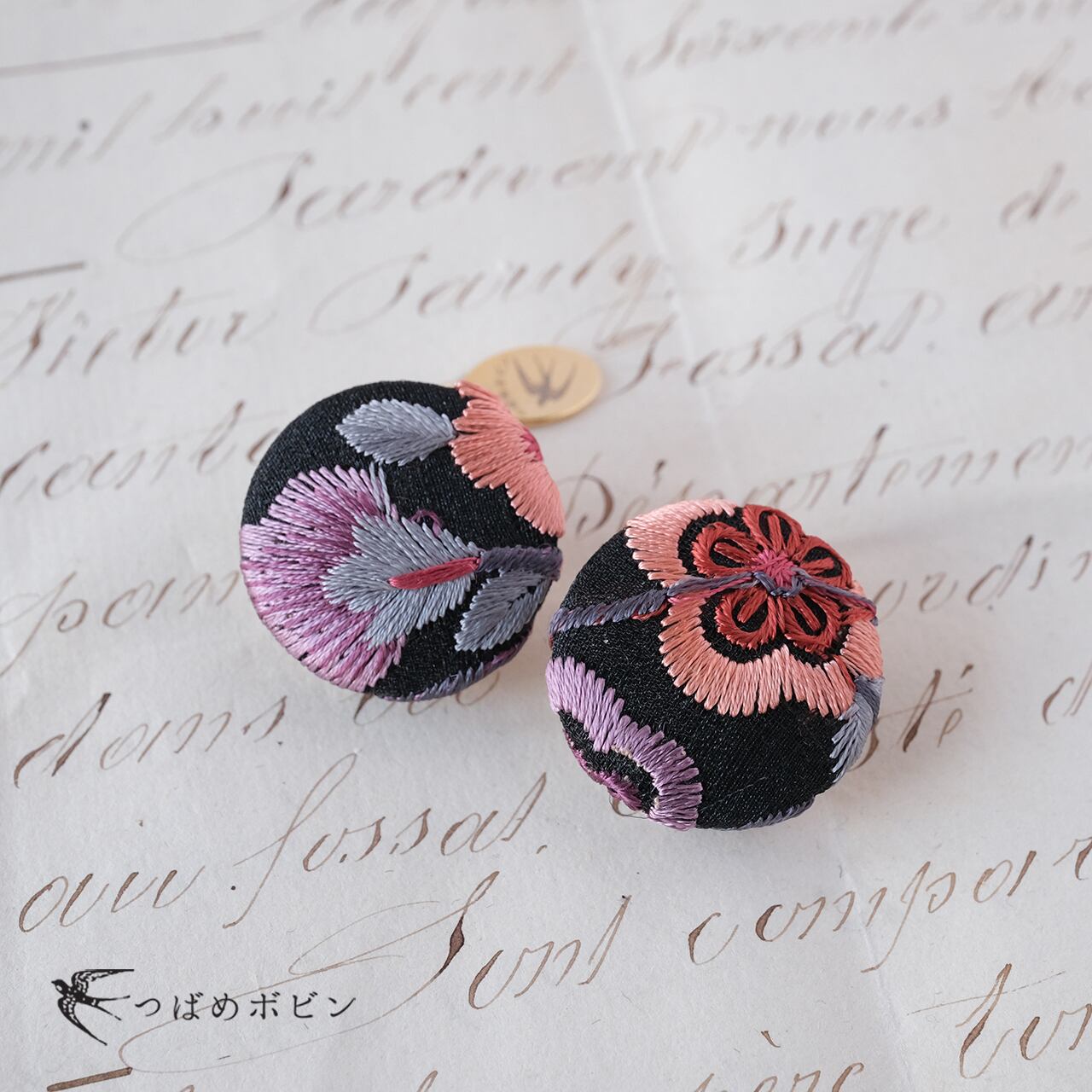 サリーボーダーのクリップ◎ブラックパープルオレンジ/花J【つばめボビンのクリップシリーズ】
