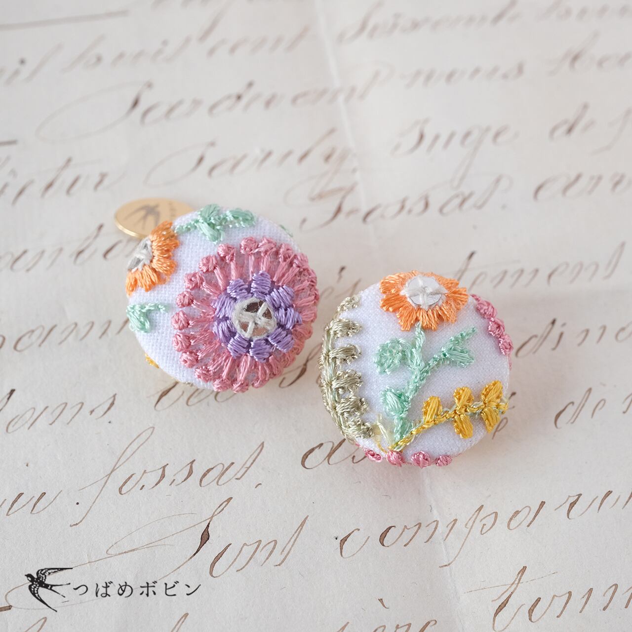 (手作りのため個体差があります。若干のサイズの誤差、また刺繍の凹凸により、多少丸の形がいびつになっているものもございます。ご了承くださいませ)