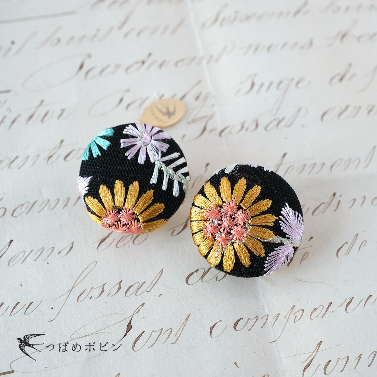 サリーボーダーのクリップ◎ブラックイエローブルー/花C【つばめボビンのクリップシリーズ】