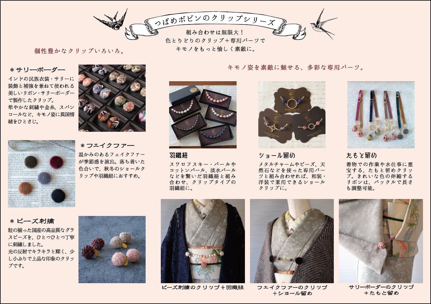 としてお使いいただける、【つばめボビンのクリップシリーズ】。