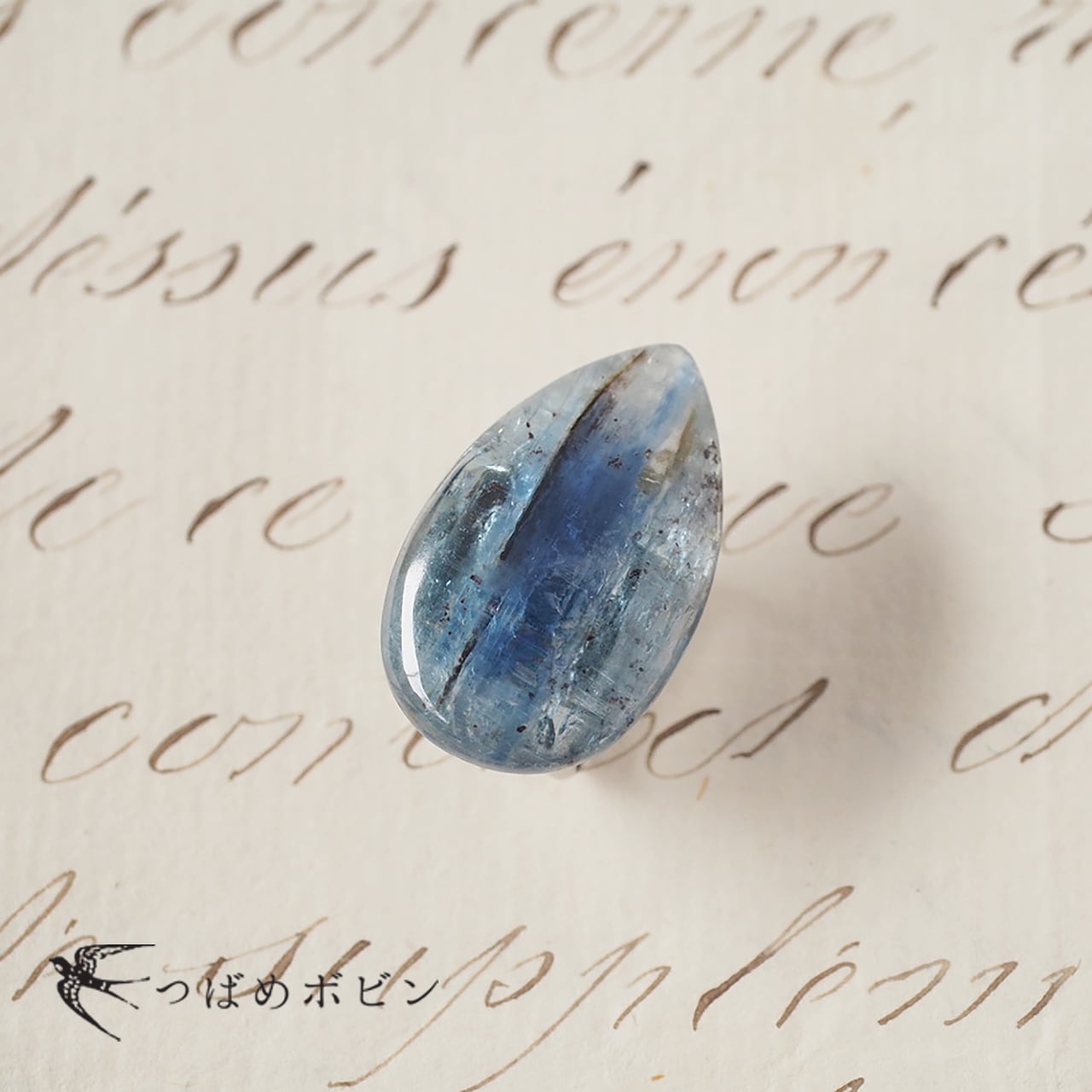 透明感と深いブルーと淡いブルーが織りなす複雑な模様が、ちいさな雫のなかに展開されて、まるで絵画のような美しい石。