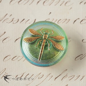 チェコ製ガラスボタンの帯留◎トンボ/ライトグリーン