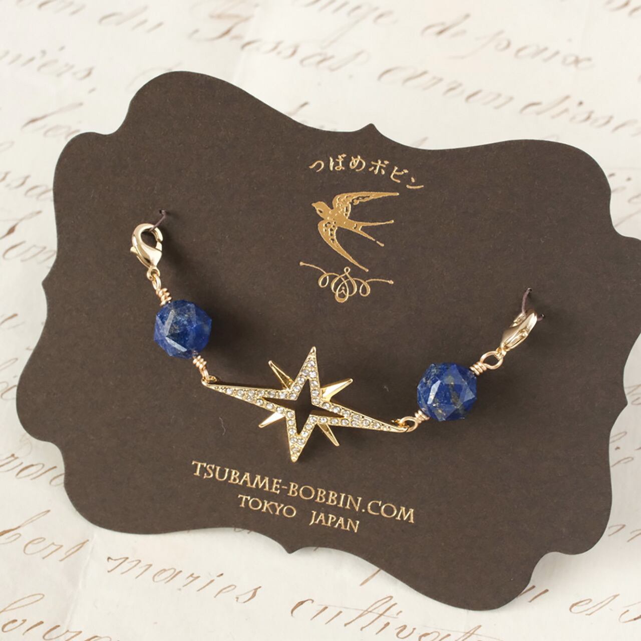 天然石と石付チャームのショール留めパーツ:スター◎ラピスラズリ/G【つばめボビンのクリップシリーズ】