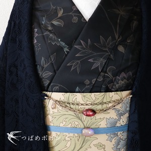 マーブル模様のビーズと大ぶりなチェーンを使った、キモノ用の羽織紐です。