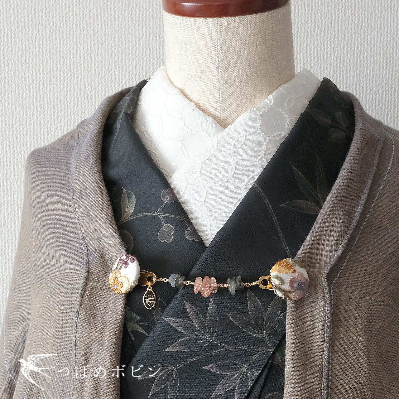 こちらは、【つばめボビンのクリップシリーズ】のクリップと組み合わせてお使いいただける、専用の「ショール留め」パーツ。画像1枚目のデザインです。