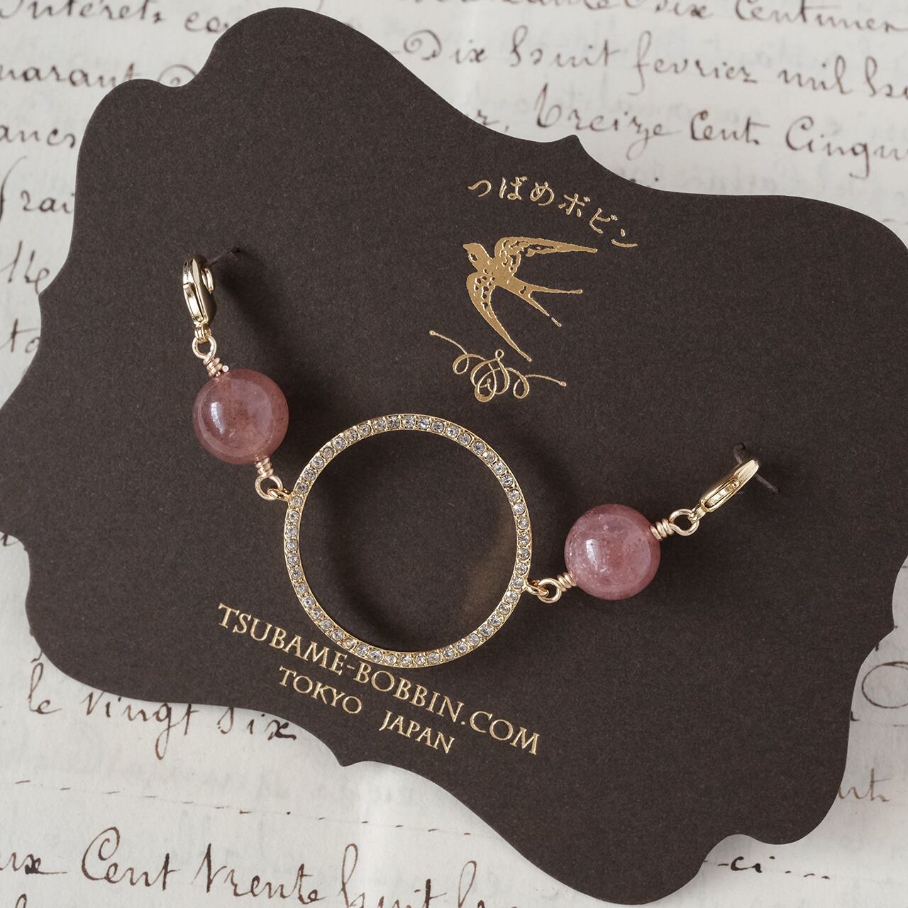 直径2.7cmほどの輪っか状のチャームの左右に天然石を合わせました。
