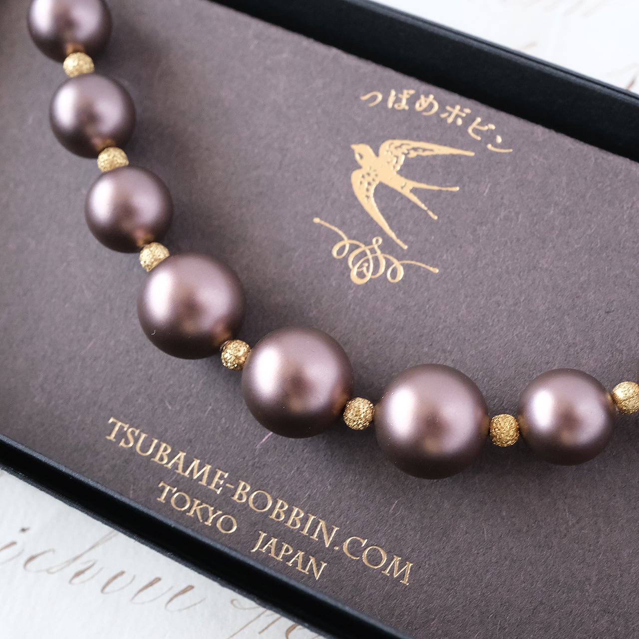 スワロフスキー・パールの羽織紐◎ベルベットブラウン【つばめボビンのクリップシリーズ】