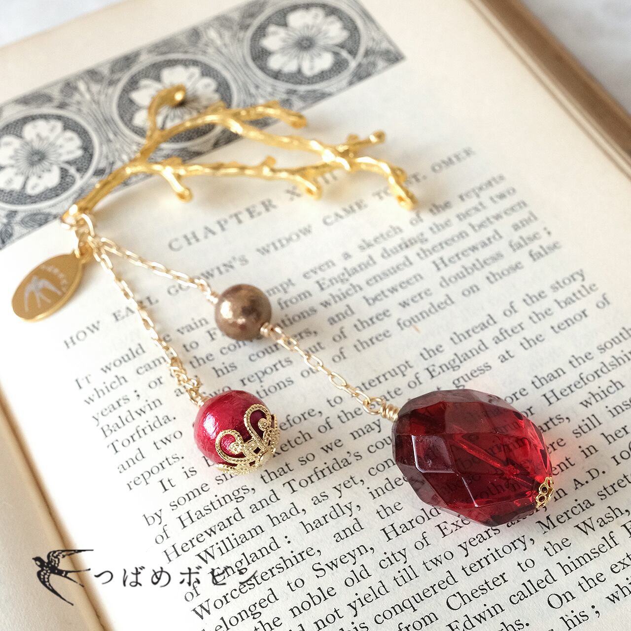 琥珀とパールの帯飾り《ルビーレッド》/K