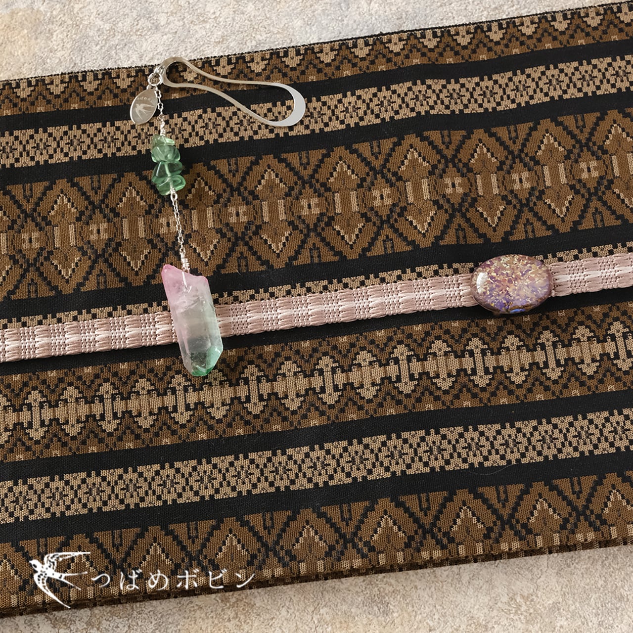帯の中に入れる部分は、瓢箪のようなデザイン性のあるチャームを合わせました。