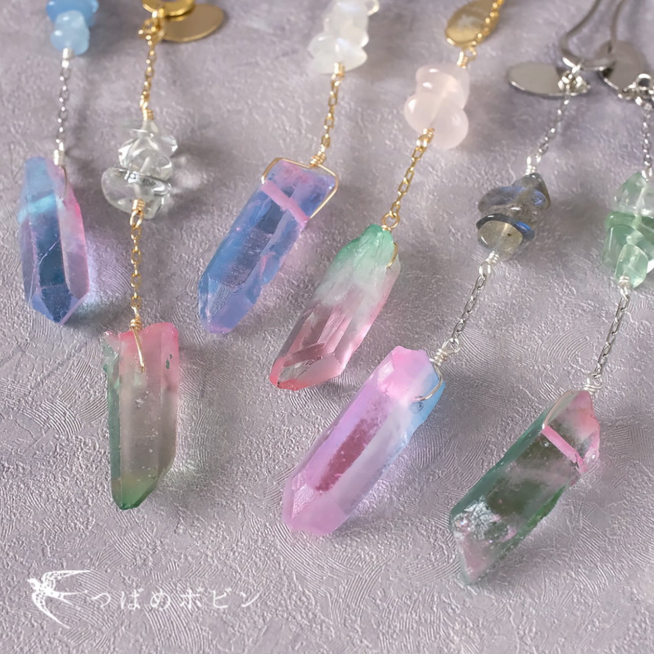 天然石(水晶(色加工あり))/フローライト/金具類