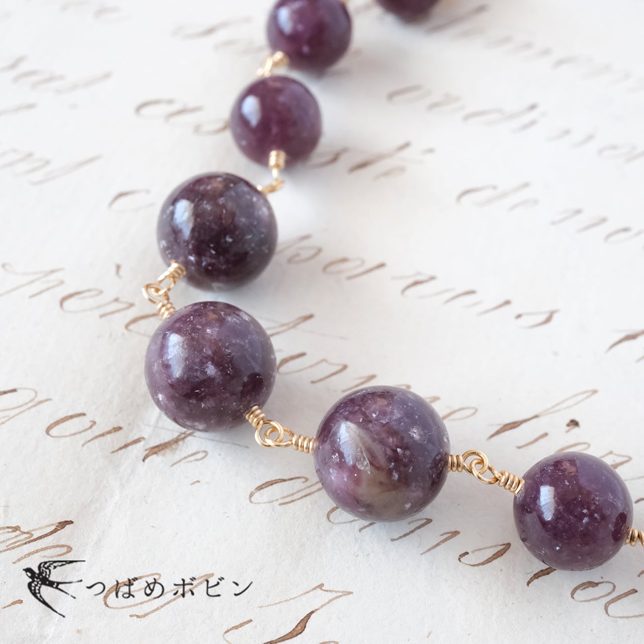 こちらは、パープルのマーブル模様のところどころに輝きが宿るレピドライト。